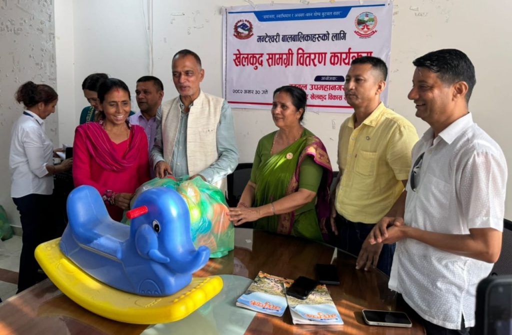 बुटवल उपमहानगरपालिका नगर खेलकुद विकास समितिद्वारा सात विद्यालयलाई मन्टेश्वरी बालबालिकाहरुलाई खेलकुद सामाग्री वितरण गरेको छ ।